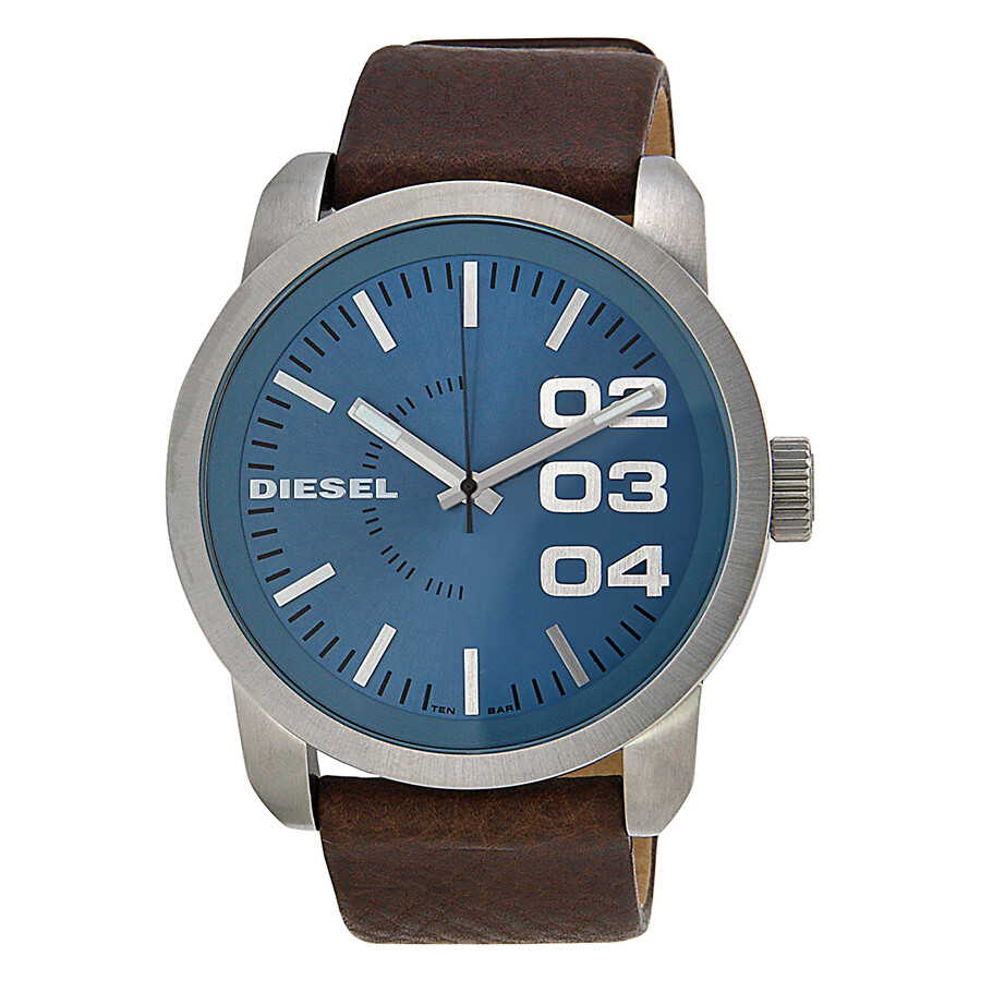 blue dial brown leather strap watch