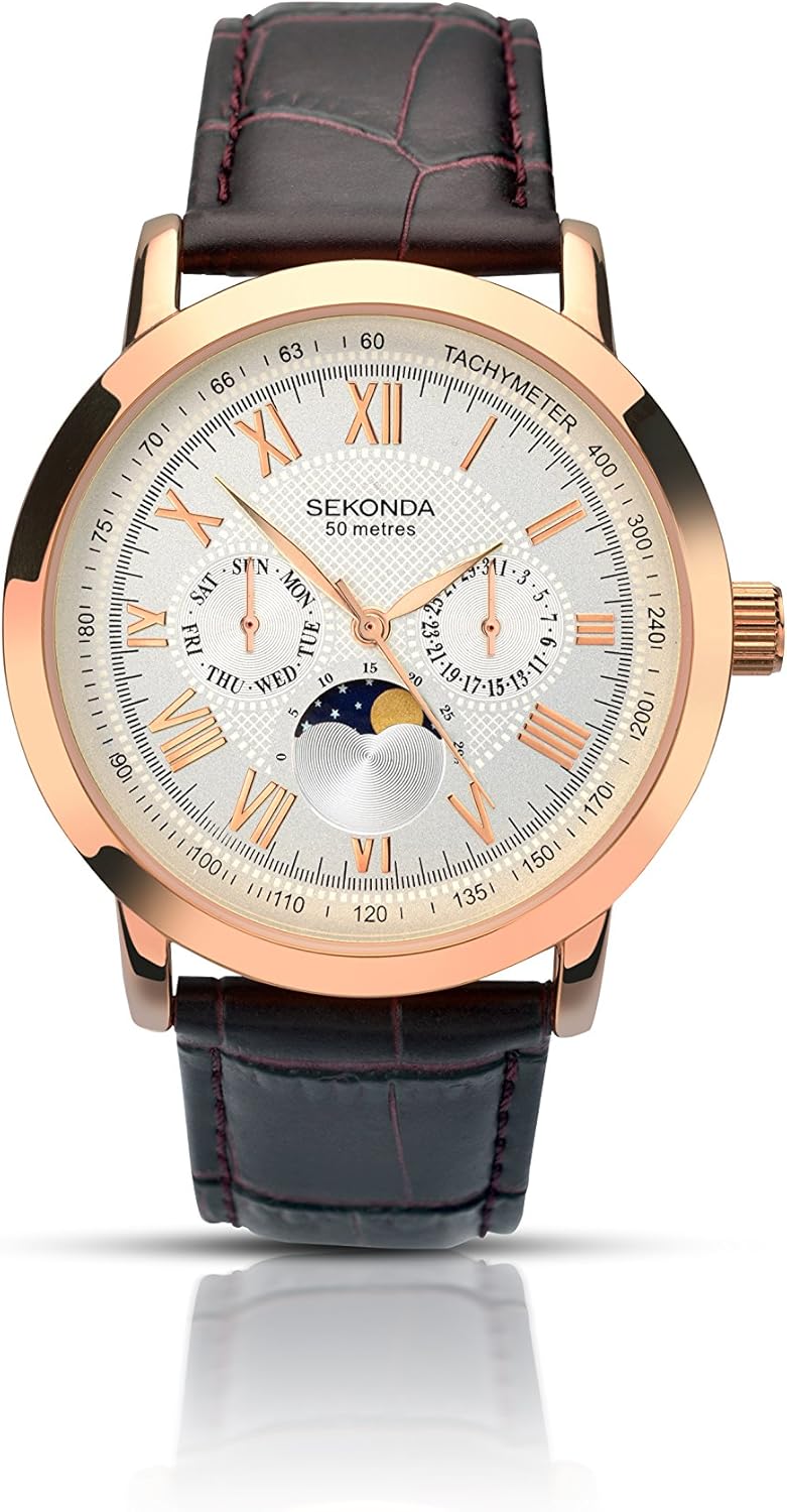 sekonda men's brown leather strap watch
