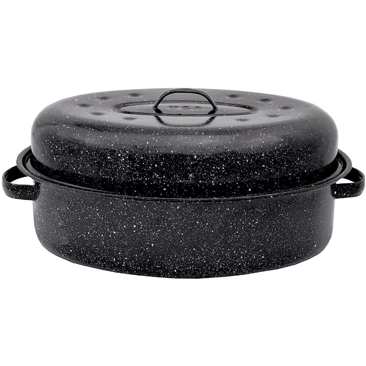 black enamel roasting pan with lid