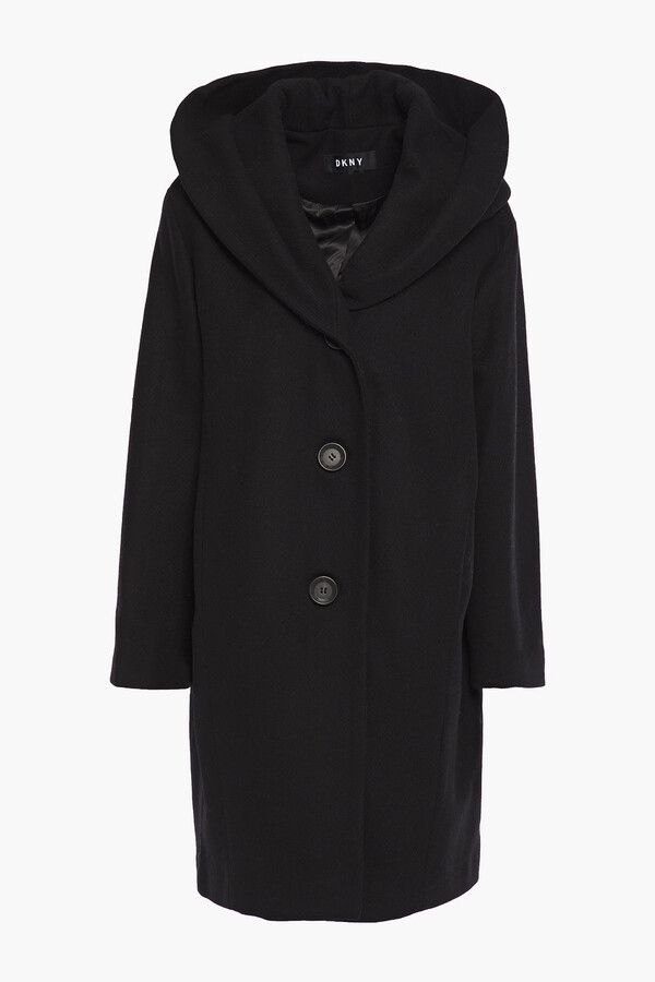 dkny hooded button front wool blend coat