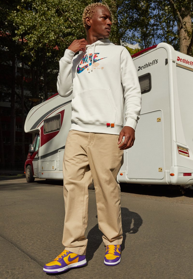 nike dunk high sneakers in university gold white