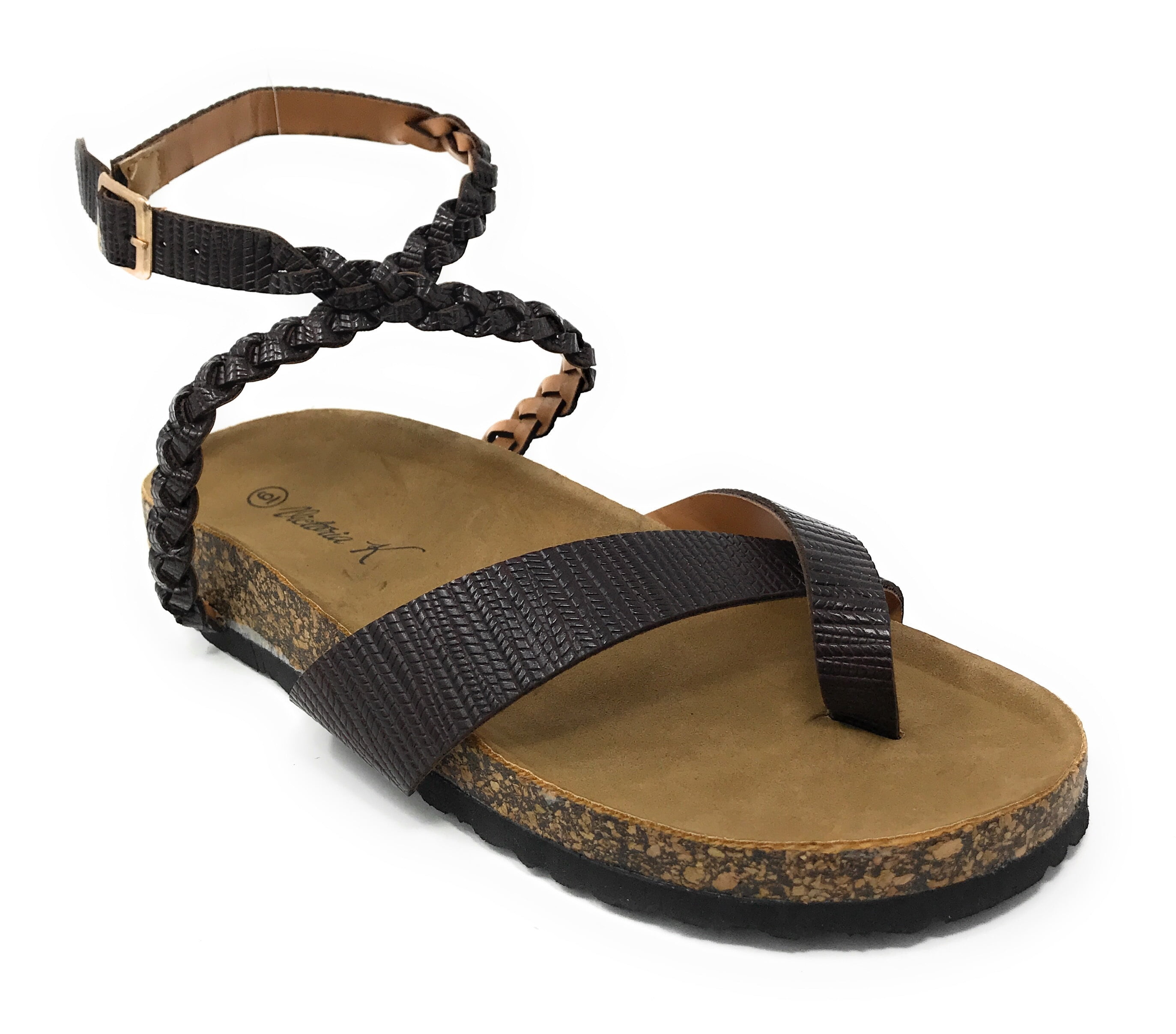 brown flat sandals with ankle strap