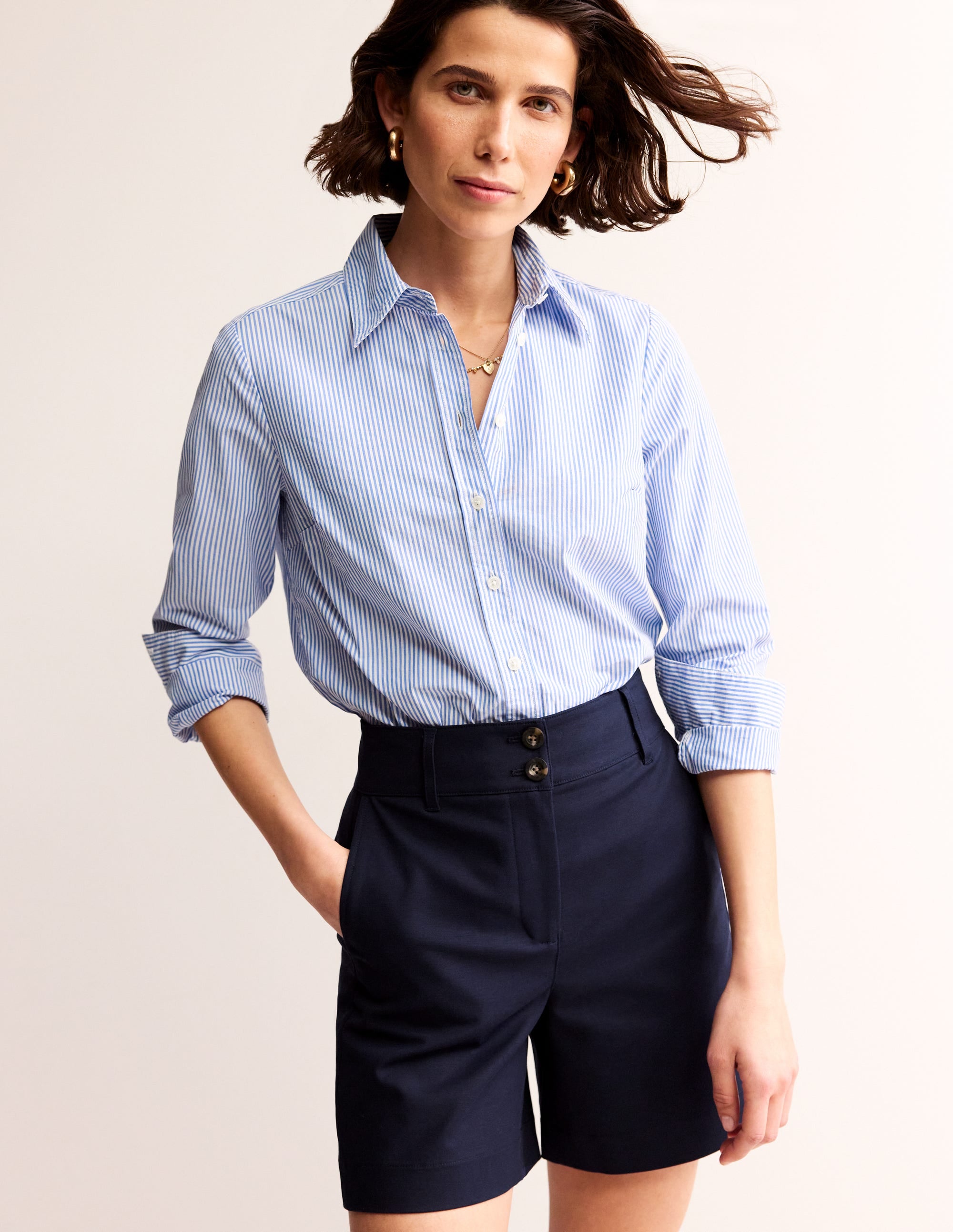 ladies tailored navy shorts