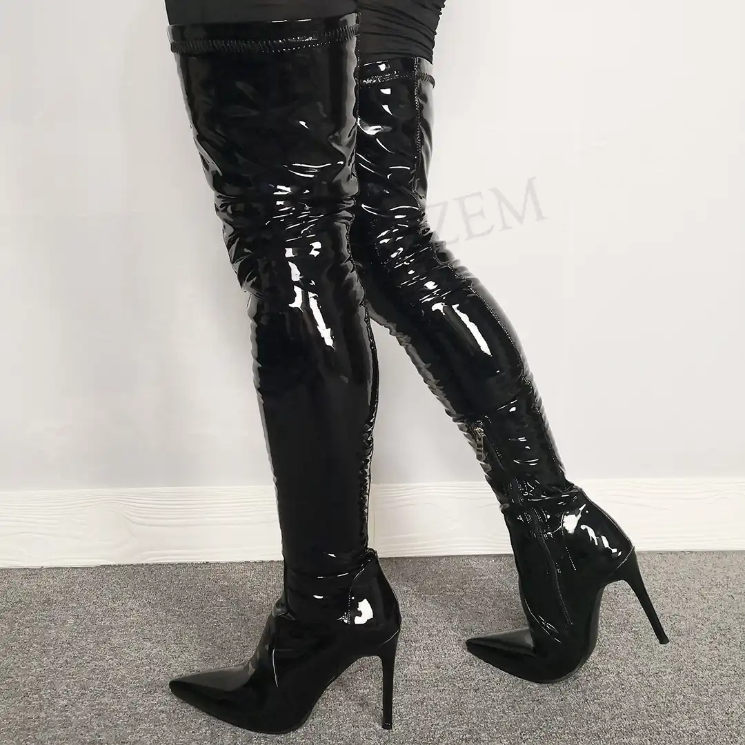 thigh high wet look boots