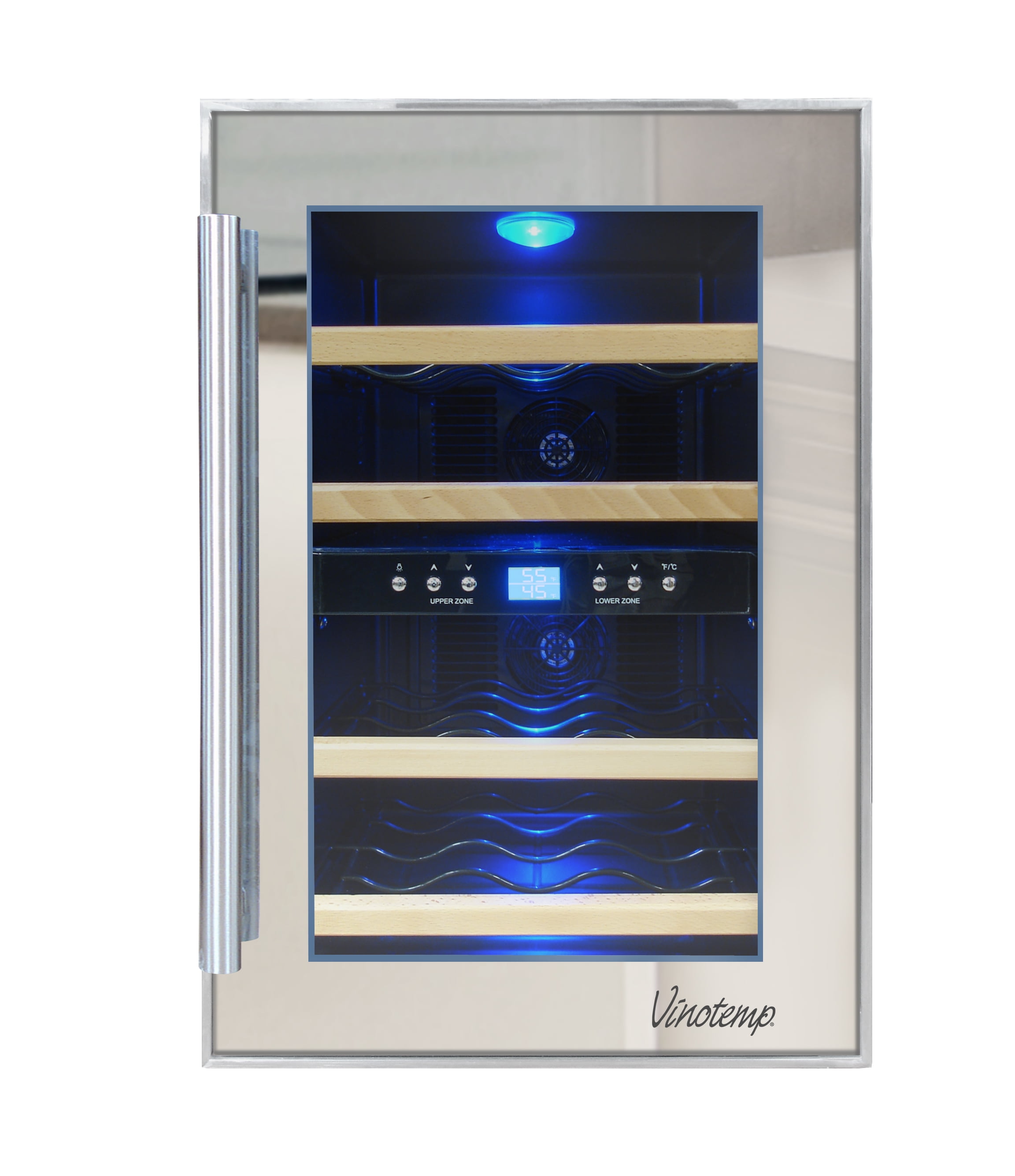 vinotemp 12 bottle dual zone thermoelectric mirrored wine cooler