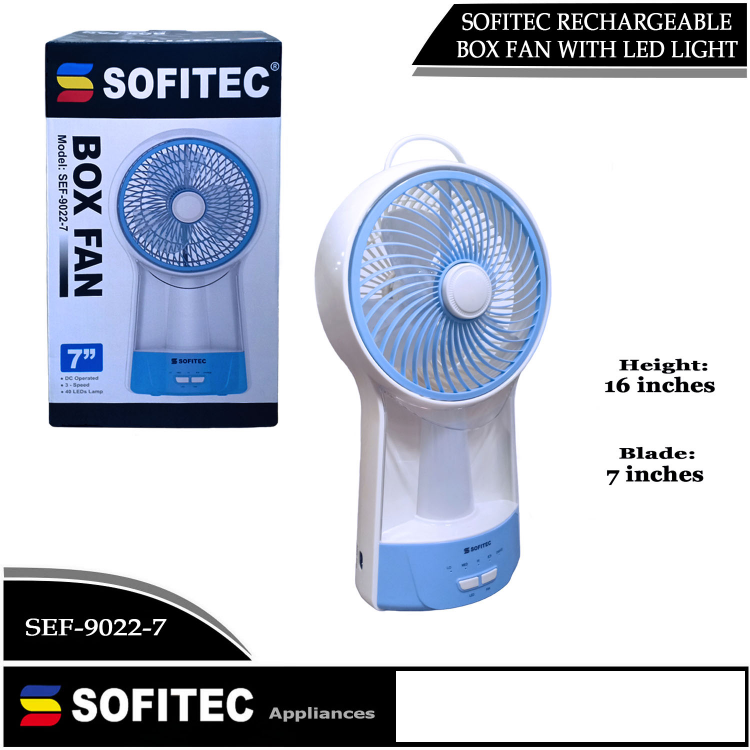 sofitec rechargeable fan with light