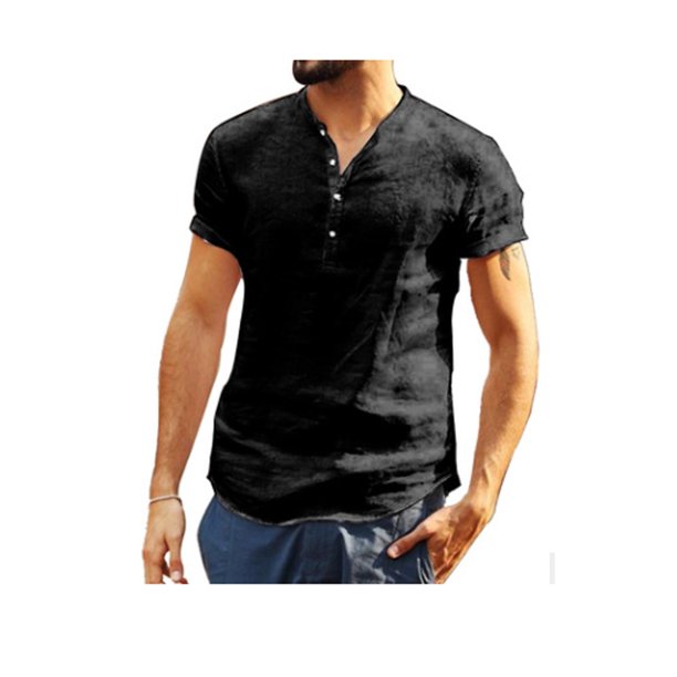 men's basic short sleeve linen shirts