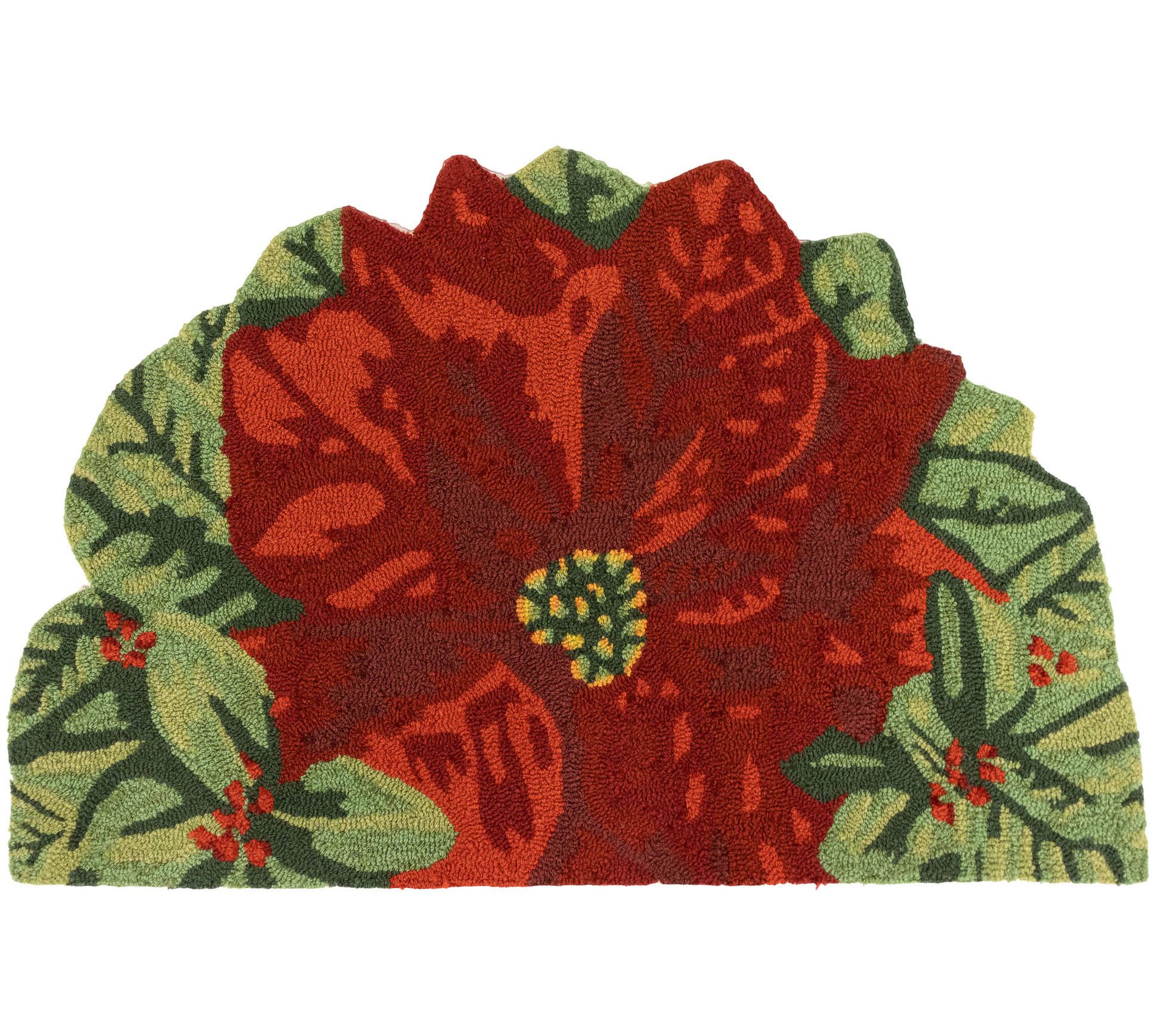 Liora Manne Frontporch Poinsettia Rug Red 20" x 30" Half Round - QVC.com