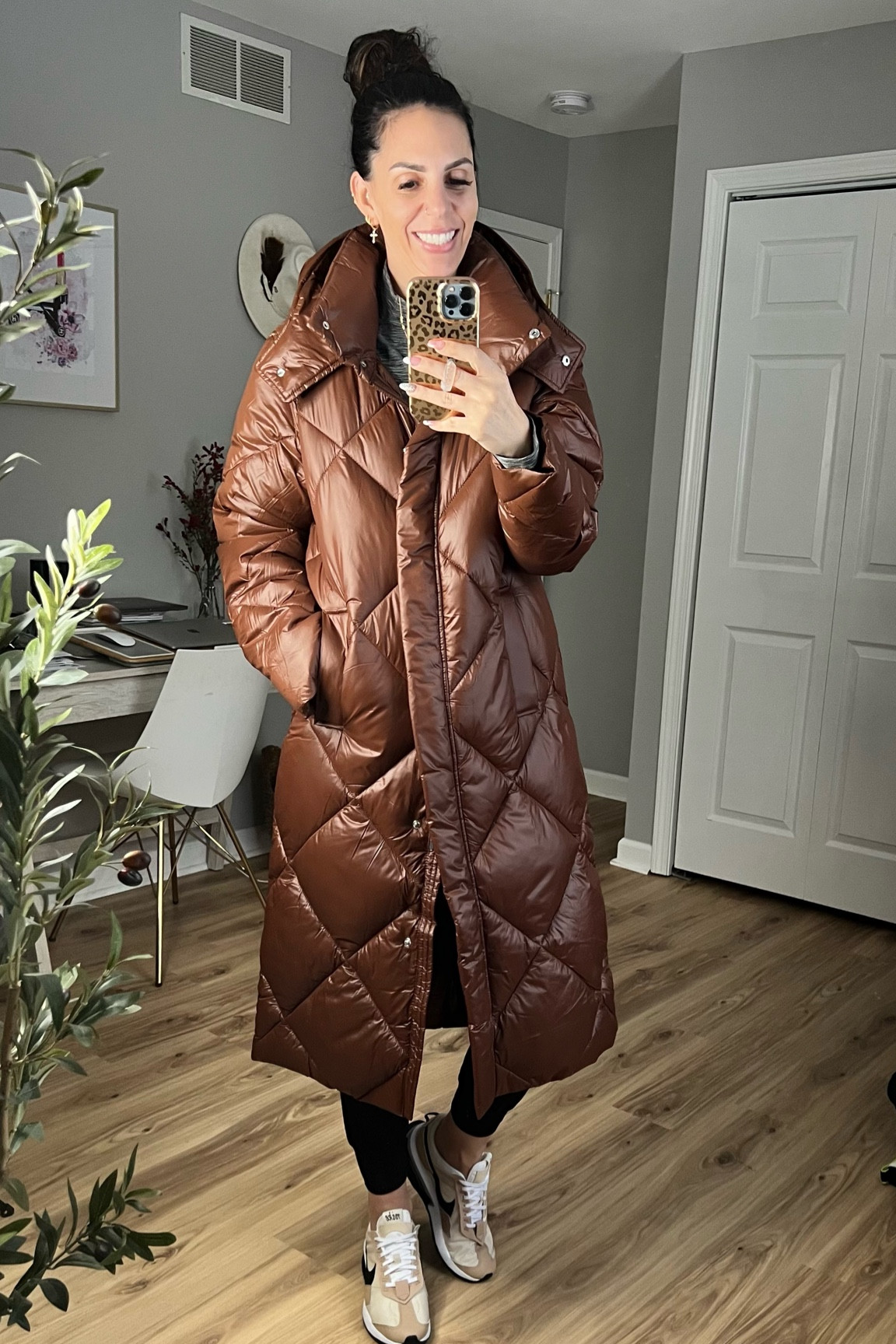 abercrombie brown leather puffer