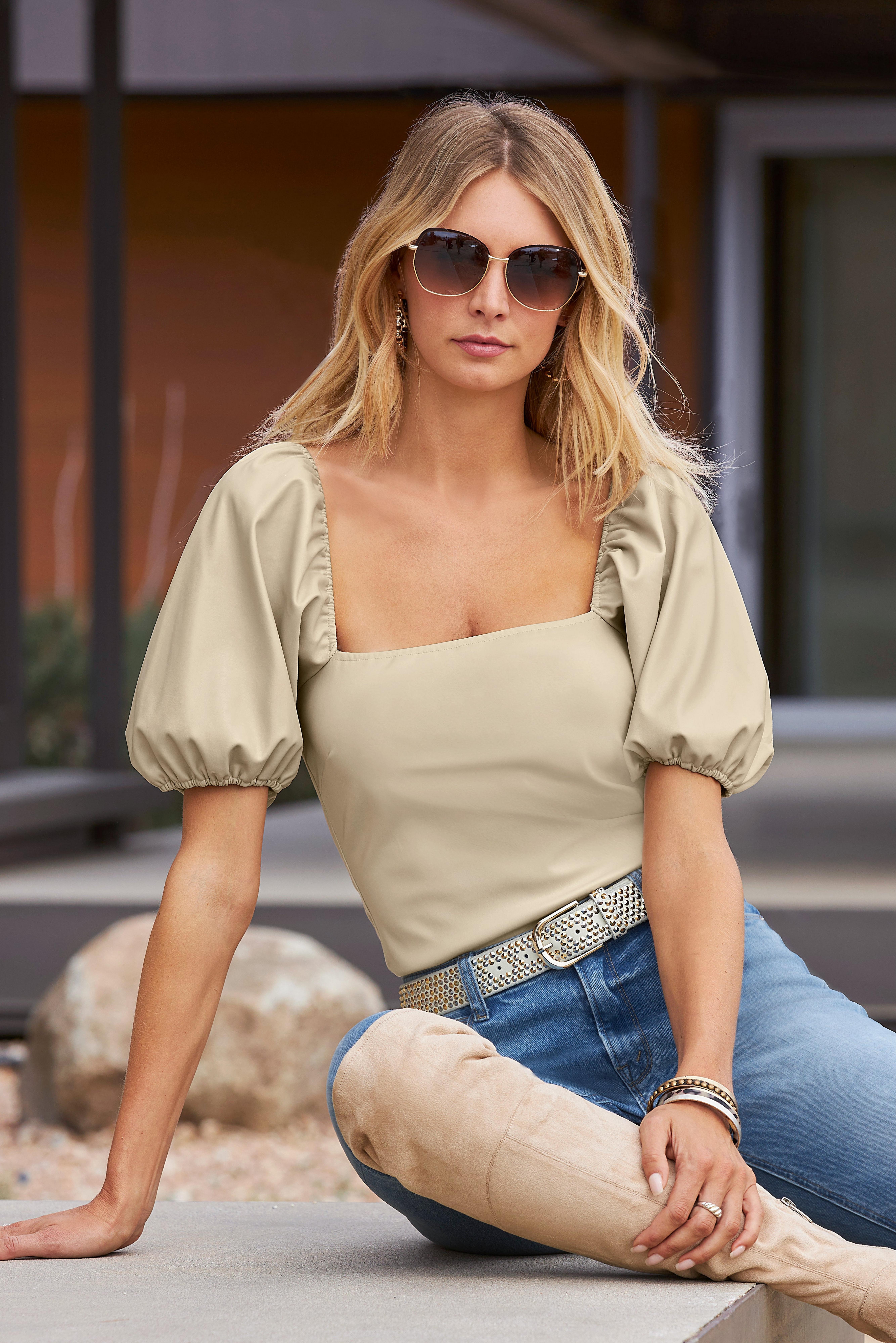 puff sleeve cream top