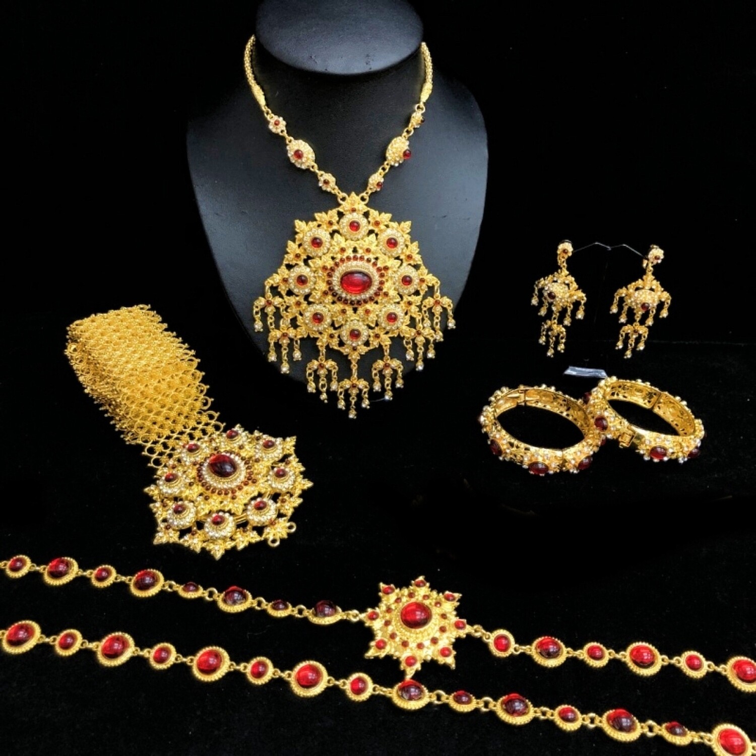 red and golden jewellery set