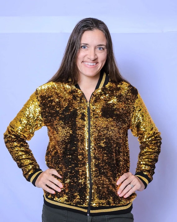 black and gold sequin bomber jacket