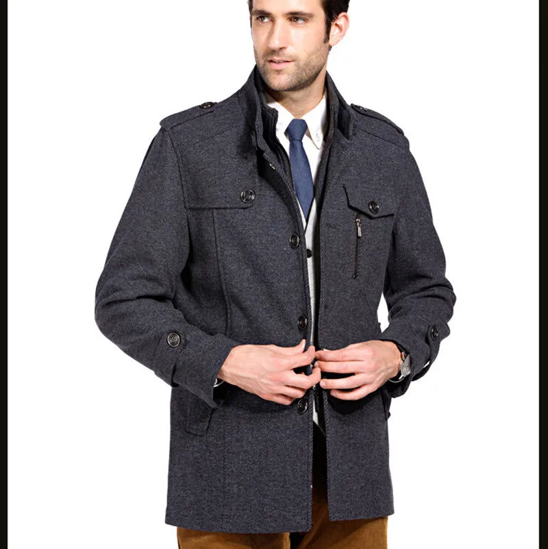 men's wool coat stand up collar