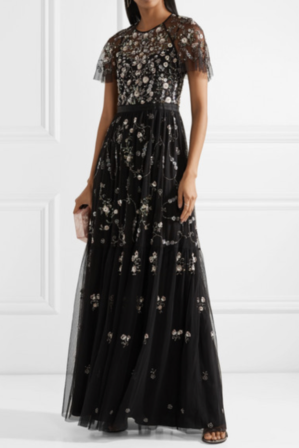 needle and thread black floral dress