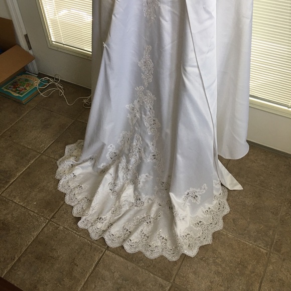 oleg cassini lace applique mermaid strapless wedding dress