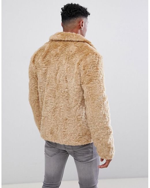 brown faux fur jacket men