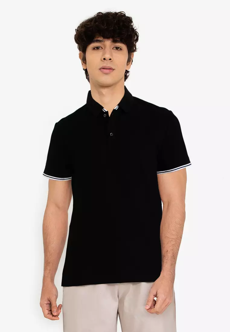 black slim fit polo tees