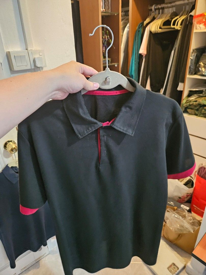 black and red polo shirt