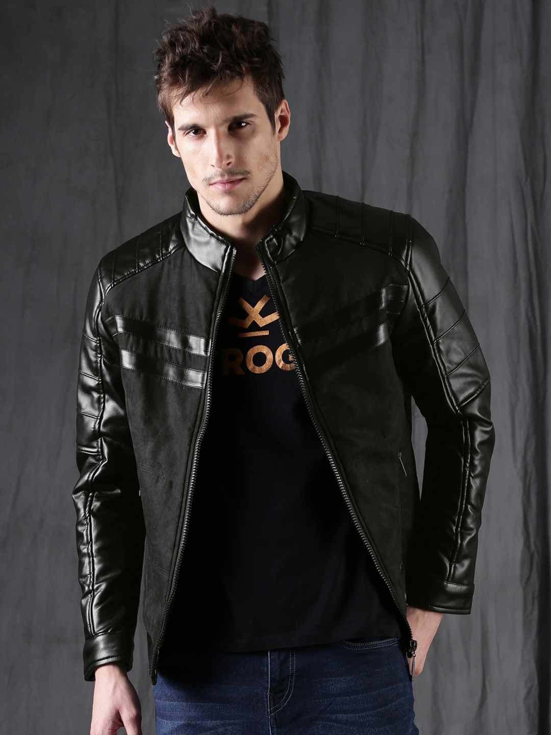 wrogn black leather jacket