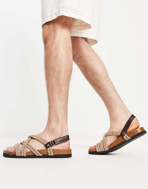 ASOS DESIGN cross strap rope sandals in stone and brown mix | ASOS