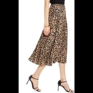 halogen pleated leopard midi skirt