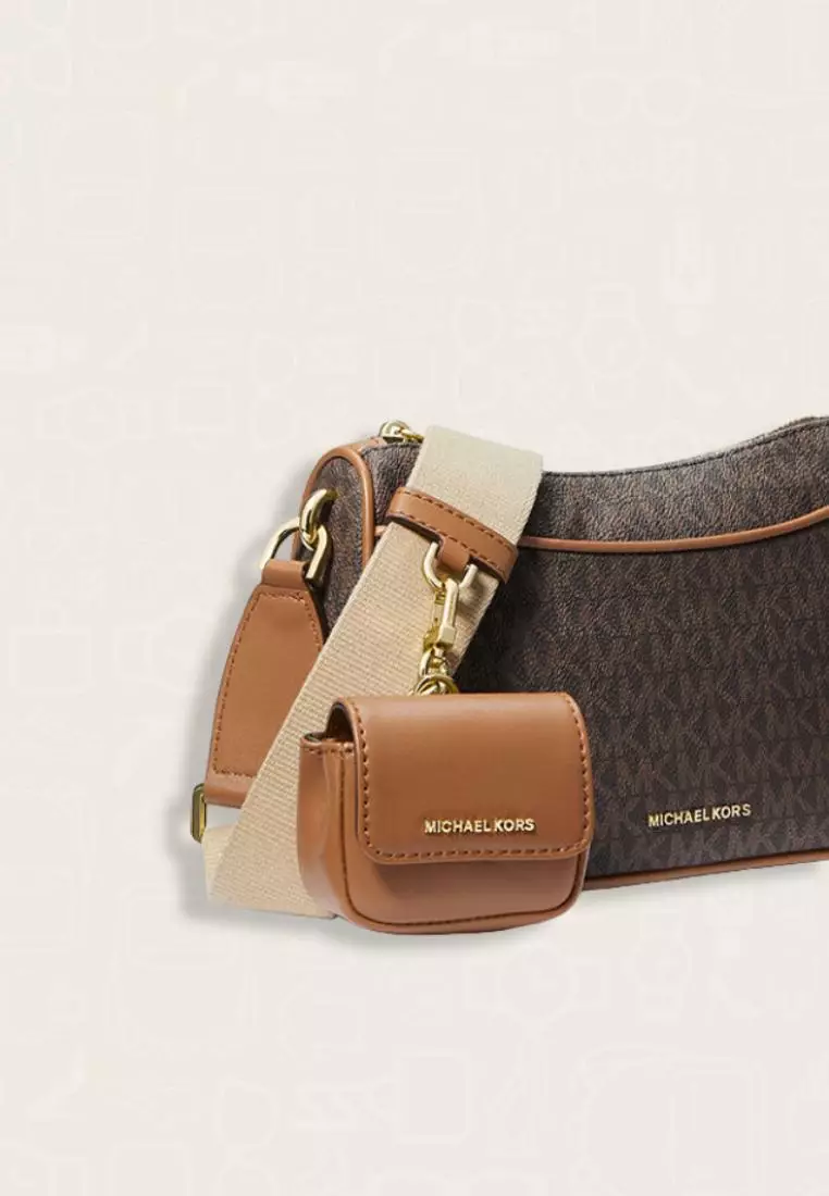 mk crossbody with tech attached signature powder blush brown