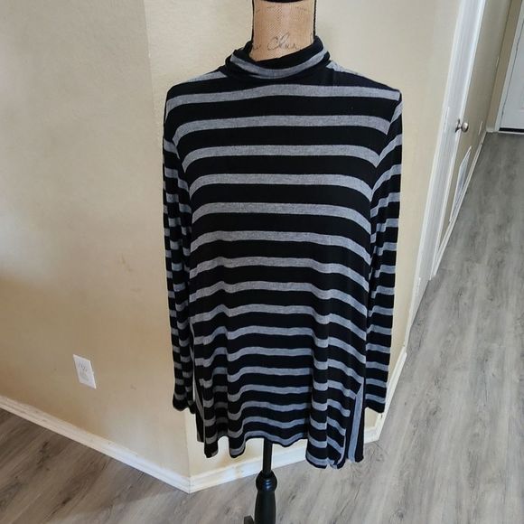 womens striped mock neck