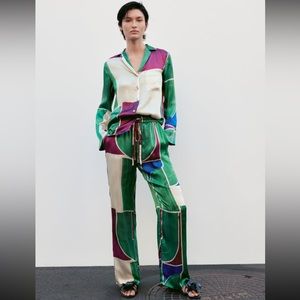 zara printed silk pants