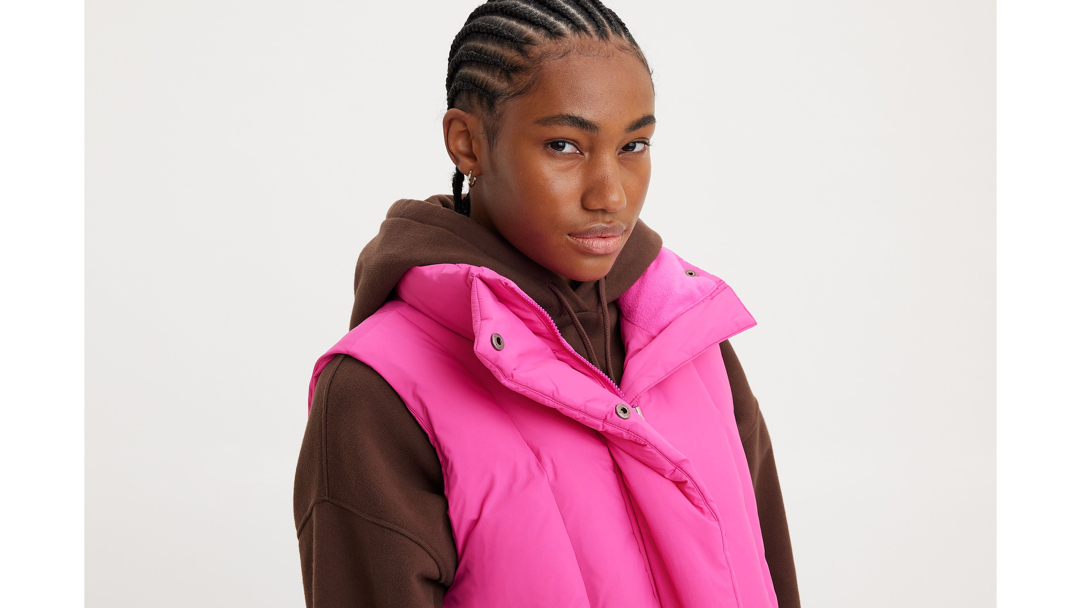 neon pink puffer vest