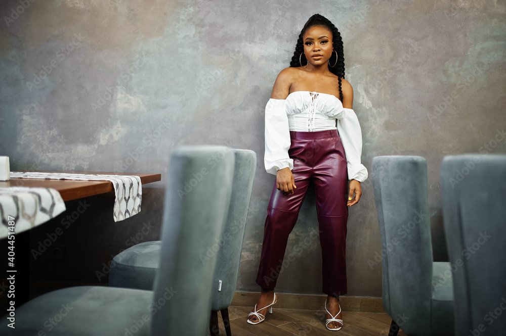 white blouse leather pants