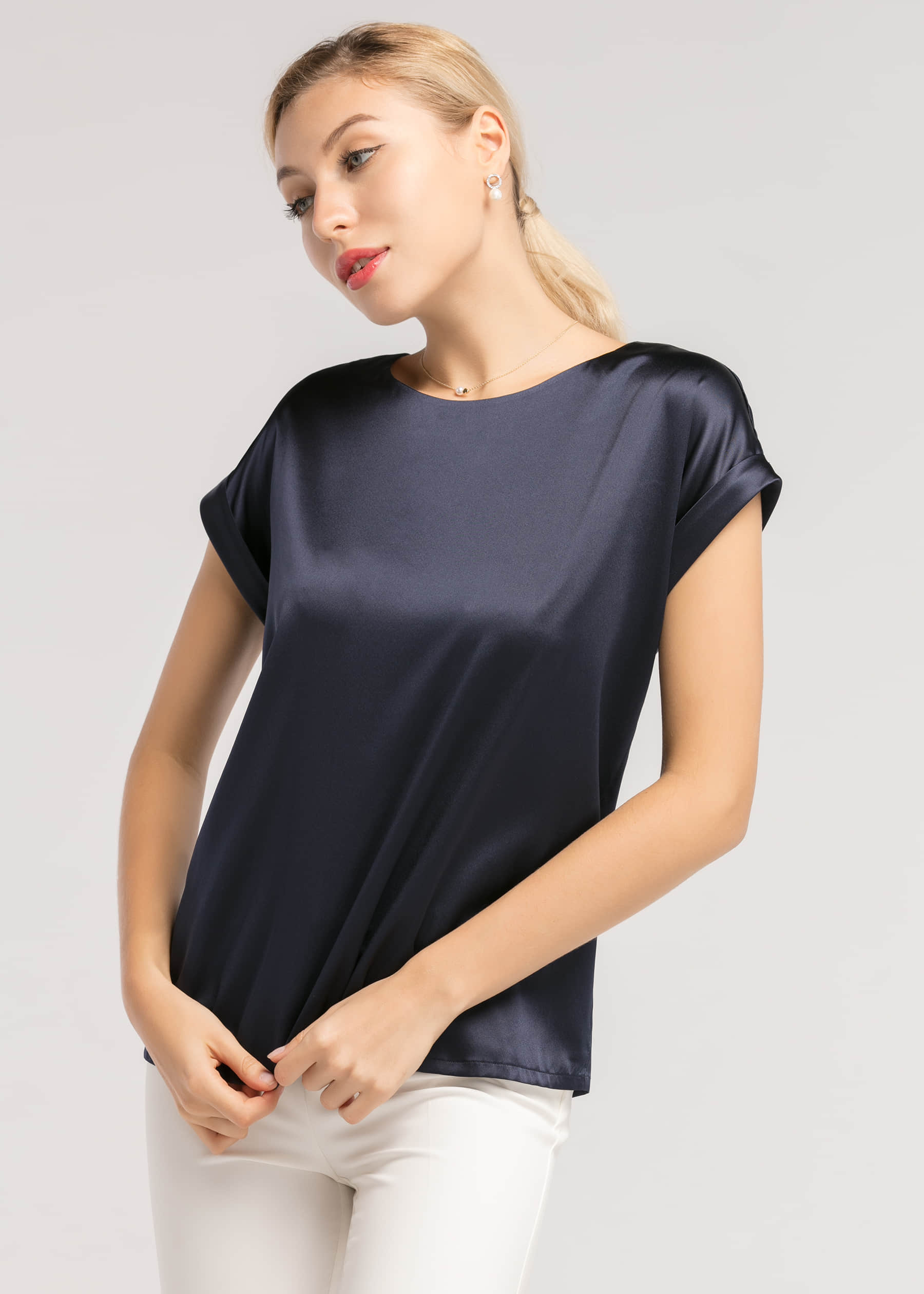 navy silk t shirt